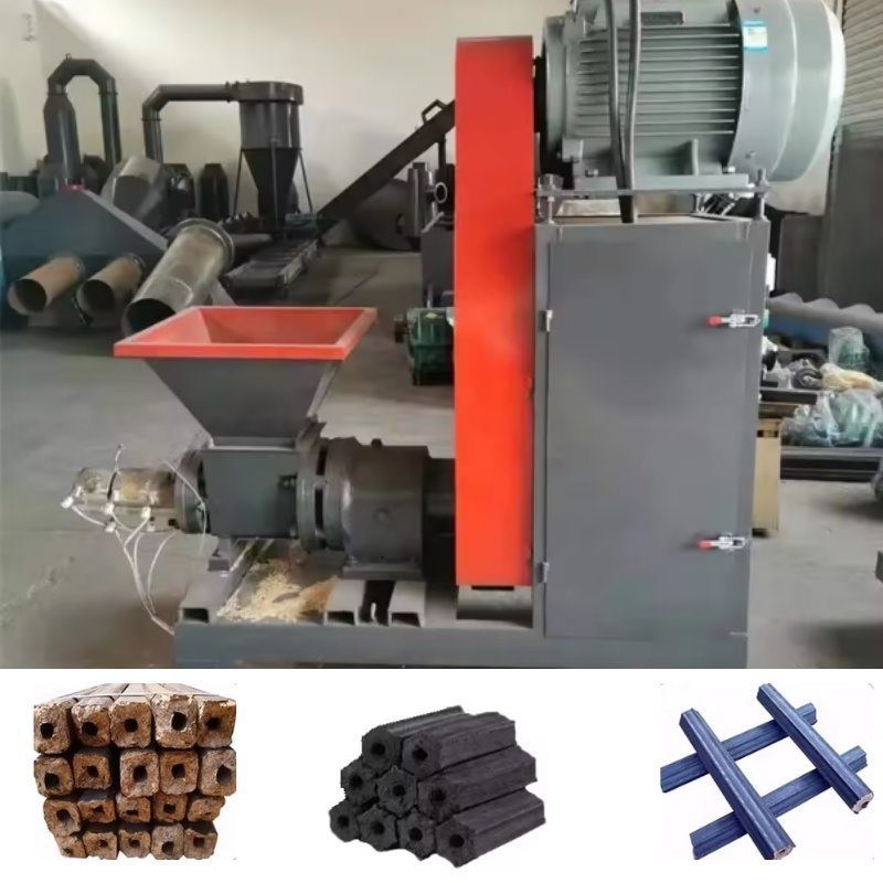 Μηχανή για τη δημιουργία μπρικέτας από άνθρακα χρησιμοποιεί πριονίδια, άχυρα καλλιεργειών, φλοιές ρυζιού, κομματάκια μπαμπού κλπ. ως πρώτες ύλες.σχηματίζεται ζώνη υψηλής θερμοκρασίας και υψηλής πίεσης με τη δράση της σπειροειδούς έλξης και του θερμαντικού δακτυλίου για την επεξεργασία των χαλαρών πρώτων υλών σε κούφες ράβδουςΤο προϊόν αυτό έχει υψηλή πυκνότητα, μικρό μέγεθος και καλή εύφλεκτοτητα και μπορεί να αντικαταστήσει το καυσόξυλο και τον άνθρακα.